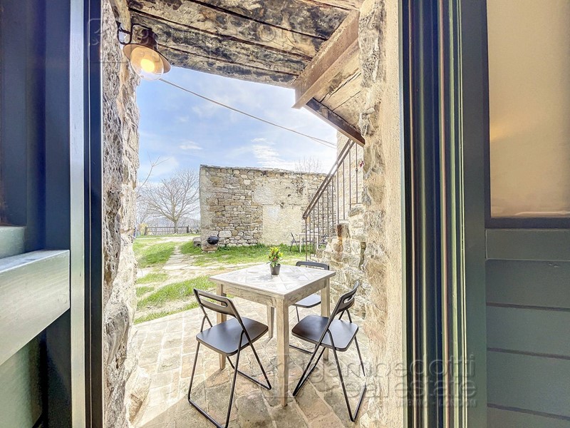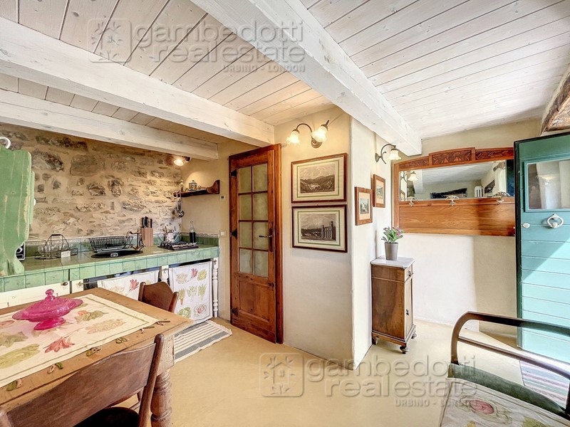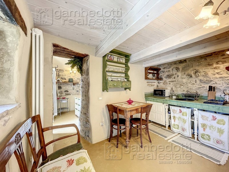 In vendita a Villagrande di Montecopiolo (Provincia di Rimini) piccolo appartamento finemente ristrutturato in antico borgo rurale completamente arredato con grande cura e nei minimi dettagli. L'appartamento è situato all'interno di un antico borgo, un tempo territorio del Duca di Montefeltro che proprio qui nel X secolo d.C. ebbe le sue origini, nel castello di Montecopiolo, situato proprio nelle vicinanze del Borgo. La proprietà ha un comodo accesso a piano terra, quindi senza barriere architettoniche ed è composto da: un piccolo ingressino, un tinello con cucina a vista, un bagno con finestrella, una camera matrimoniale con porta finestra che si affaccia sullo scoperto di proprietà, parzialmente coperto, ideale per la colazione al mattino e/o per mangiare all'esterno stando coperti. Disponibile una piazzola per il parcheggio dell'auto, di proprietà esclusiva, a fianco della casa. Tutto l'appartamento è completo di arredamento con mobili ed elettrodomestici per la cucina, realizzata su misura. La proprietà è stata finemente ristrutturata nei particolari, senza tralasciare alcun dettaglio, dai materiali costruttivi tra cui intonaci naturali in calce e rivestimenti in pietra a spacco naturale, travi in legno antico di recupero, elementi in ferro battuto, tutto rigorosamente frutto di una ricerca nel rispetto di un restauro conservativo, nell'intento di mantenere il fascino originale ed elegante di un tempo. L'arredamento e le finiture sono anche il risultato di uno studio approfondito dei dettagli e degli abbinamenti, sempre nell'ottica dell'originalità e dello stile dell'intero intervento. Una proprietà nel complesso dal grande fascino e dal gusto di un tempo passato, dove l'attenzione alle piccole cose ed il piacere delle cose semplici ed essenziali, allo stesso tempo di gran gusto ed equilibrio, sono ancora l'elemento trainante. Un luogo immerso tra la quiete delle colline ed i suoni della natura, lontano dai rumori del traffico e del caos cittadino, ideale come residenza occasionale, essendo vicino ai centri abitati più grandi e dotati di tutti i servizi (circa 1,5 km dal centro abitato vicino), o per chi fosse alla ricerca di una seconda casa o casa vacanza, comoda ed allo stesso tempo già pronta chiavi in mano e di grande relax, a 40 km dall'aeroporto di Rimini, dalle spiagge della riviera e dall'autostrada, un rifugio incontaminato per gli amanti della tranquillità. Occasione irripetibile, prima volta sul mercato. Contattaci subito per non perdere questa fantastica occasione, chiama lo 0722 041400.
