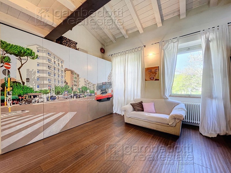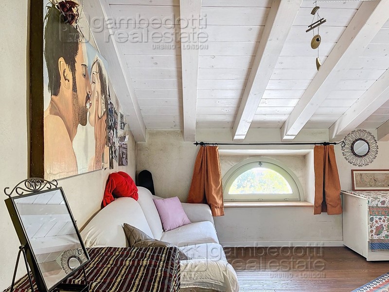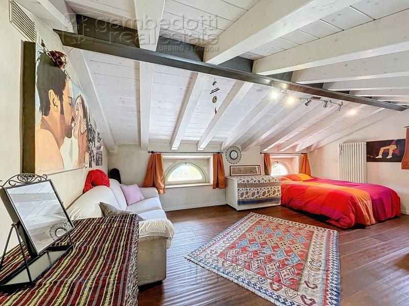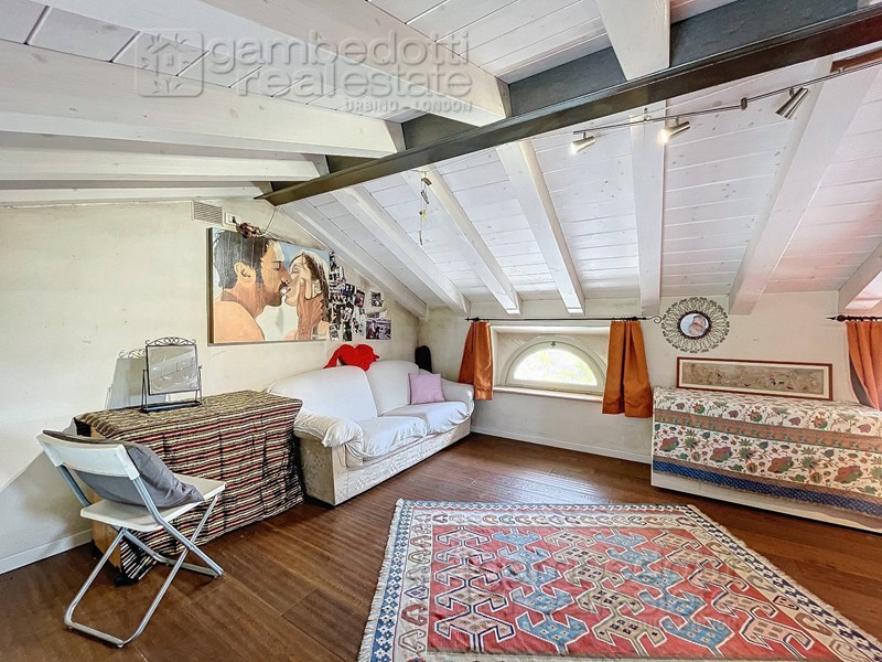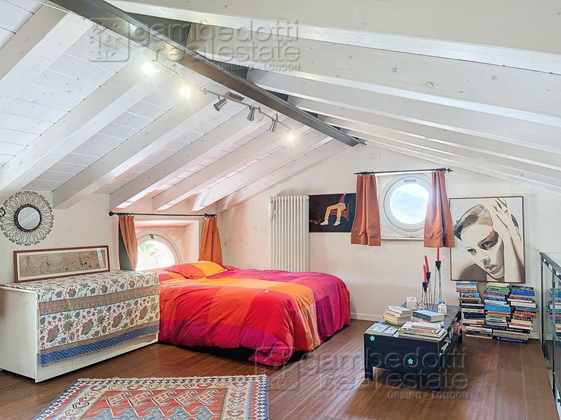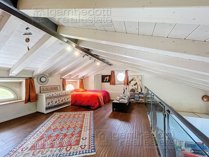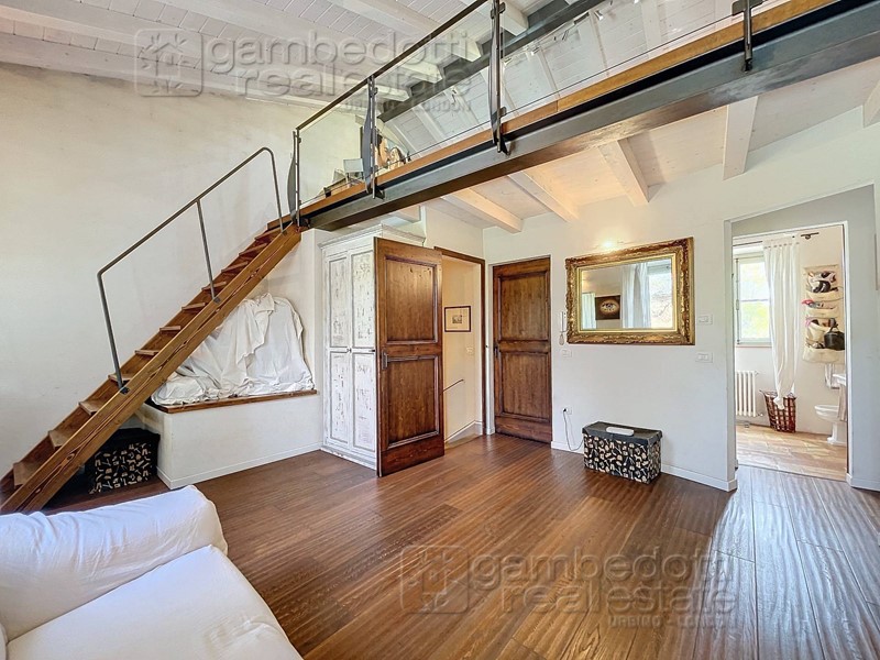 Al primo piano, invece, raggiungibile attraverso una scala interna, si approda ad un ambiente aperto, utilizzato come salottino e spazio armadi; da questo ambiente si collegano due camere da letto spaziose e luminose di cui una matrimoniale ed una singola, un bagno con vasca, ed una scala a vista che porta al piano soppalcato: un ampio ambiente polivalente con l'affaccio sul salottino sottostante attualmente utilizzato come terza camera.