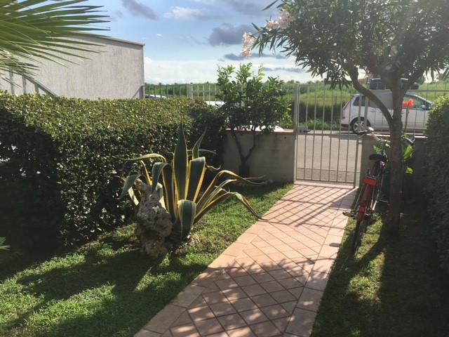 Appartamento posto al piano terra con ingresso indipendente delle dimensioni di circa 70 mq composto di ingresso su soggiorno, cucinino separato, una camera matrimoniale, una camera singola, un salottino da poter adibire ad ulteriore camera, terrazzo di servizio ed ampia corte privata, in parte pavimentata ed in parte destinata a giardino; l'appartamento è inoltre dotato di un comodo garage posto al piano sottostrada. L'immobile si presenta in buono stato generale e dotato di impiantistica autonoma. Posto all'interno di una palazzina a schiera composta di appartamenti con ingressi indipendenti, localizzata a Villarosa in tranquilla zona turistica, silenziosa e nelle immediate del mare.