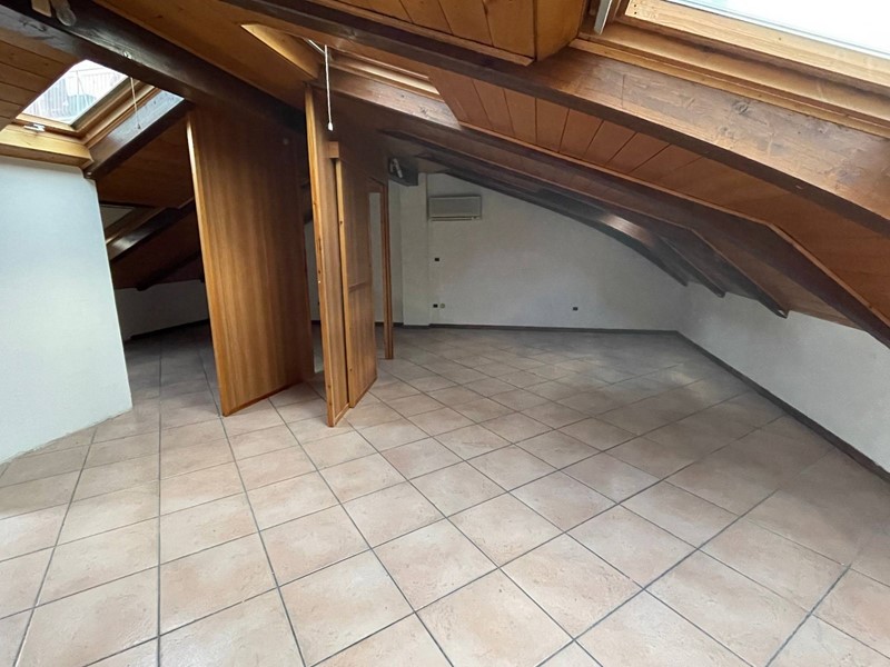 In zona centralissima a pochi passi dall'isola pedonale, caratteristico appartamento con tetto a vista delle dimensioni di circa 80 metri quadri composto di ingresso su soggiorno con angolo cottura, due camere da letto, un ampio bagno con finestra, un ripostiglio ed un terrazzino abitabile. Lappartamento è posto all'ultimo piano con ascensore di una elegante palazzina localizzata in zona centralissima e servita. L'appartamento è provvisto di riscaldamento autonomo, porte e infissi in legno doppio vetro, portone blindato, impianto di climatizzazione e e velux a tetto. Possibilità di acquisto di un posto auto privato posto all'interno della corte condominiale. Ottime condizioni generali.