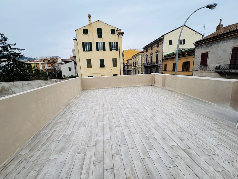 AFFARE In zona centrale a San Benedetto del Tronto ed a pochi passi dall'isola pedonale poco metri, luminoso APPARTAMENTO CON GRANDE TERRAZZO UNICO DI 60 MQ posto al piano primo delle dimensioni di circa 60 mq composto di ingresso su disimpegno, soggiorno con angolo cottura, una camera da letto doppia, una cameretta/studio, bagno, un balcone accessibile dal reparto notte di circa 7 mq ed un ampio terrazzo vivibile delle dimensioni di circa 60 mq posto a ridosso dal reparto giorno E DOVE POTER ISTALLARE PERGOTENDA. Immobile realizzato con ottimi rifiniture, bagno di pregio, travi a vista a soffitto, e ampia vetrata a vetro verso il fantastico terrazzo da godere a pieno.
