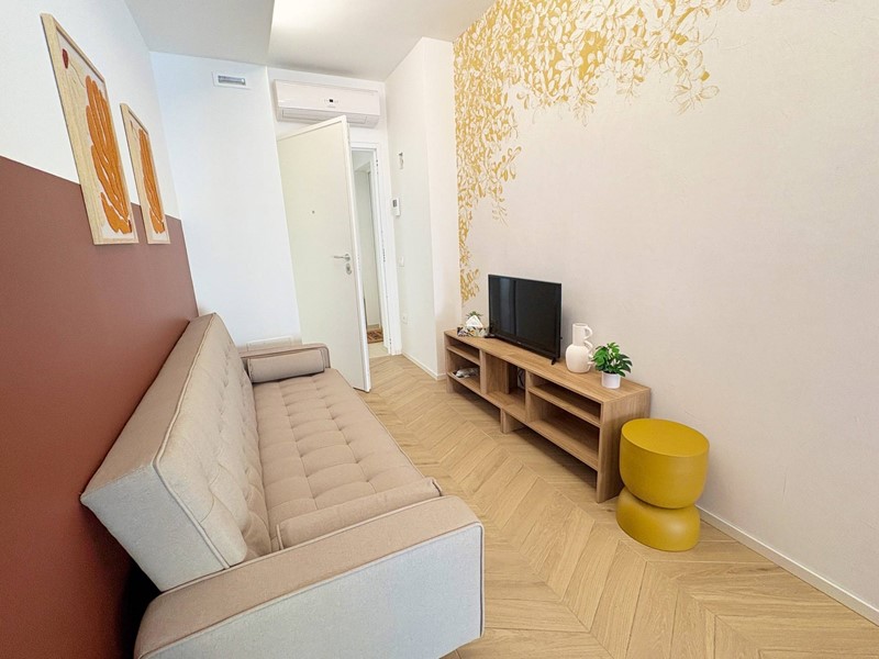 San Benedetto del Tronto, Zona centrale, vendesi appartamento di circa 41 mq oltre balcone al piano primo servito da ascensore con ingresso su soggiorno con angolo cottura, bagno, camera doppia e balcone. L'immobile, nuovissimo, è stato appena ultimato, dotato di ogni confort e arredo di ottima qualità. Venduto completamente arredato, risulta essere una buona soluzione adatta a chi vuol fare un investimento sicuro o chi cerca un appoggio vicino al centro di san benedetto e a poche centinaia di metri dalla spiaggia. Possibilità di acquistare a parte posto auto o garage da abbinare.