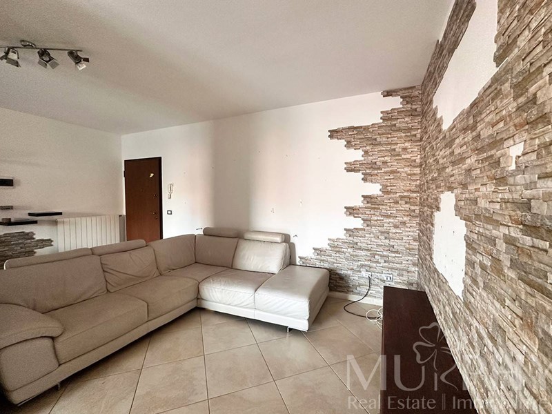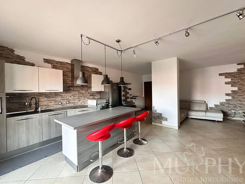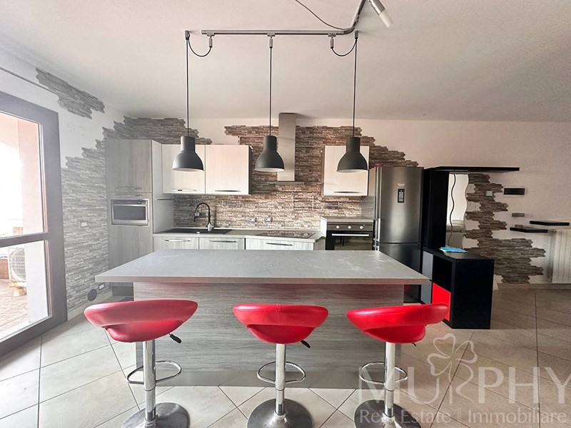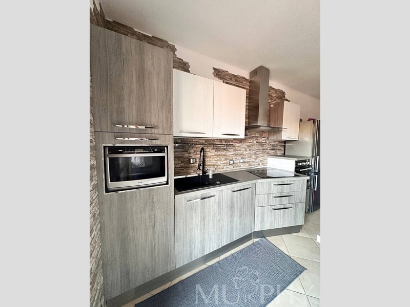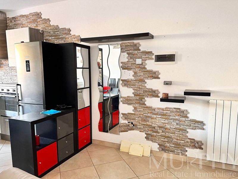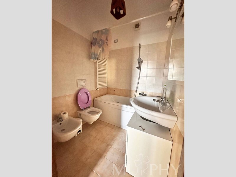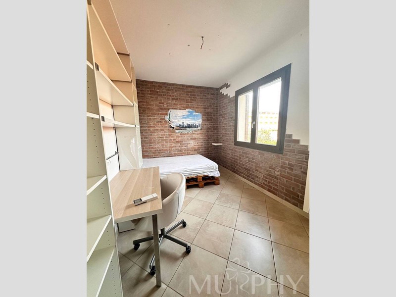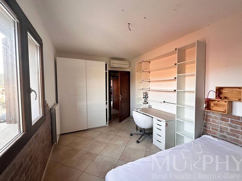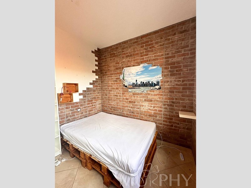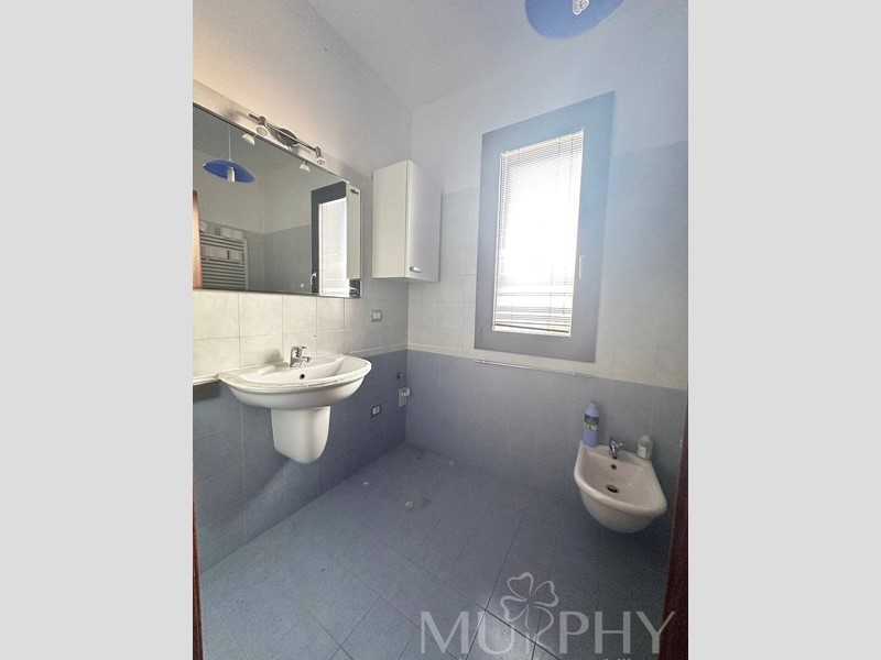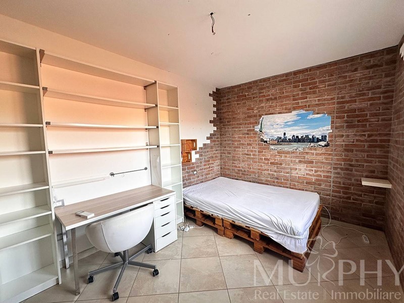 L'appartamento include una camera da letto matrimoniale con accesso a una grande terrazza, una cameretta, due bagni di cui uno con box doccia e l'altro con vasca da bagno, e dispone anche di una cantina adiacente alla proprietà, di circa 12 metri quadrati che assicura spazio extra per organizzare al meglio la casa.