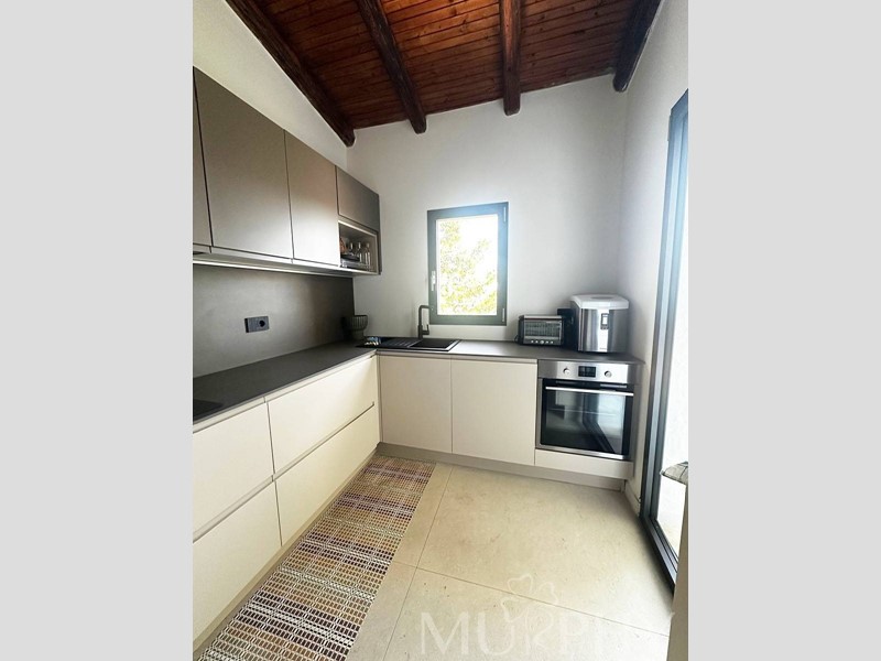 Adiacente al soggiorno, la cucina è progettata per offrire praticità e stile, con un accesso diretto alla terrazza, permettendo di cucinare all'aria aperta in completa armonia con la natura.