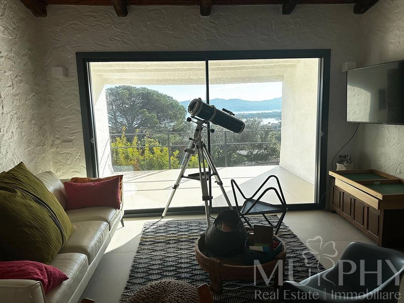 Circondata da un verde rigoglioso, la villa offre uno scenario idilliaco che si fonde perfettamente con le mozzafiato vedute sul mare cristallino e sullincantevole isola di Caprera.
