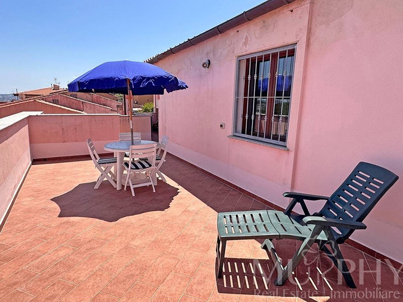 La proprietà situata al terzo piano con ascensore è composta da un'ampia zona giorno, cucina abitabile, due camere da letto e due bagni di cui uno con vasca ed il secondo con box doccia, posto auto privato nonché di una spaziosa terrazza con vista mare, ideale per godersi momenti di relax all'aperto e/o per organizzare cene e pranzi con amici e familiari.