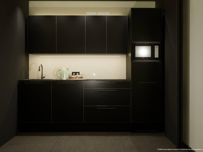 L'immobile verrà consegnato suddiviso in funzionali uffici con doppio servizio e due posti auto riservati.