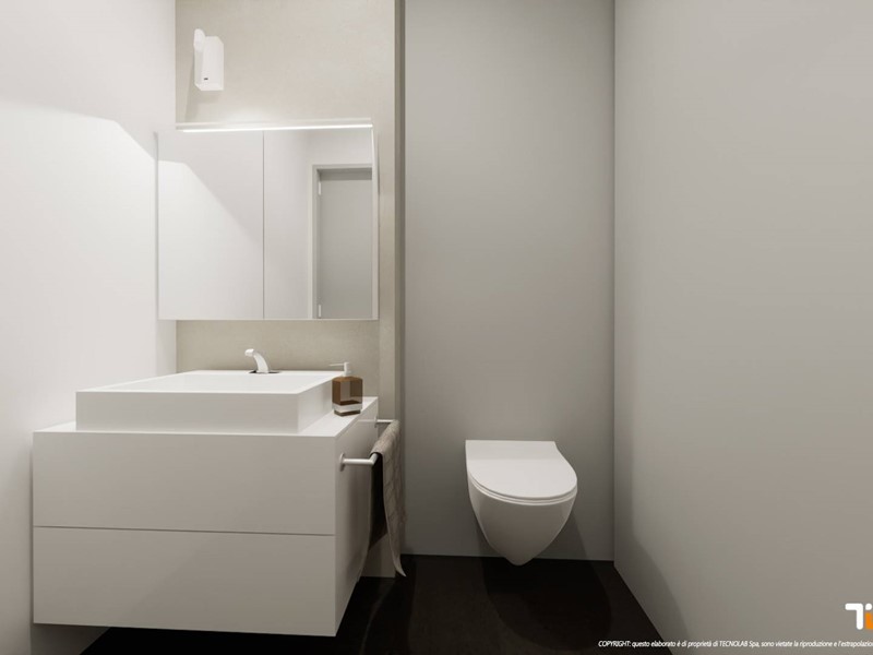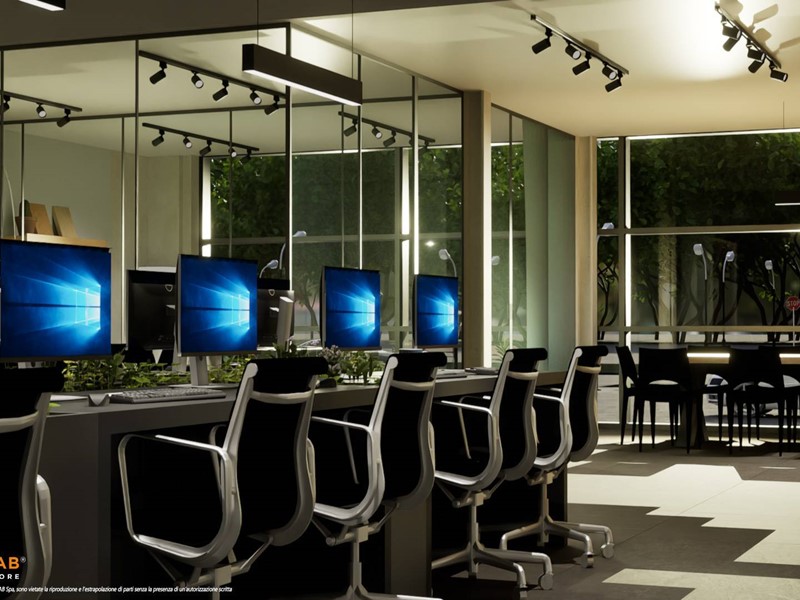 L'immobile verrà consegnato open space con doppio servizio e due posti auto riservati.