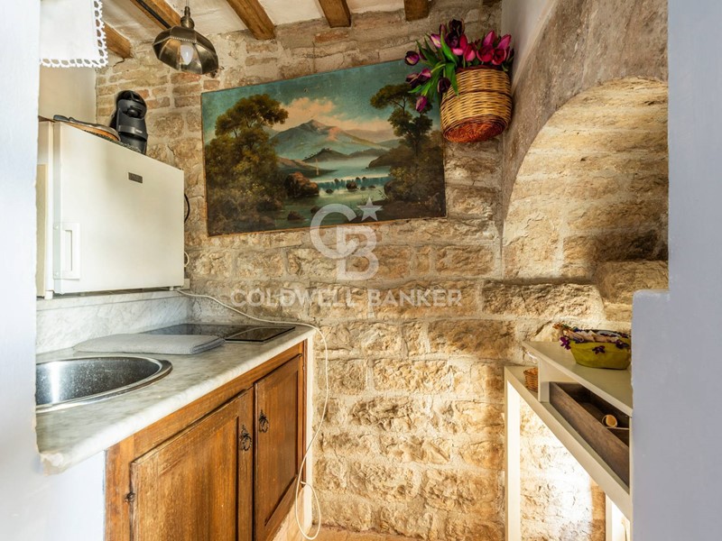 La proprietà misura una superficie di 160 mq totali, gode di ingresso indipendente ed è composto da un ampio soggiorno arricchito da volte in pietra e camino, cucina, due camere e bagno.
