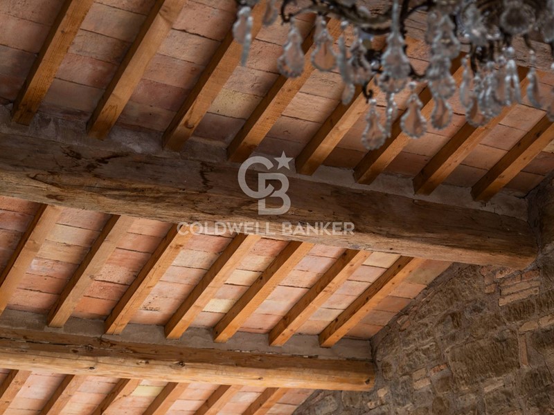 La dimora è stata finemente ristrutturata nel corso degli anni con attenzione ai dettagli e alle tradizioni architettoniche locali. Le finiture incarnano il carattere rustico e campestre dei tipici casali umbri con pavimenti in cotto, soffitti con travi in legno a vista e dettagli artigianali che si sposano armoniosamente con gli elementi paesaggistici.