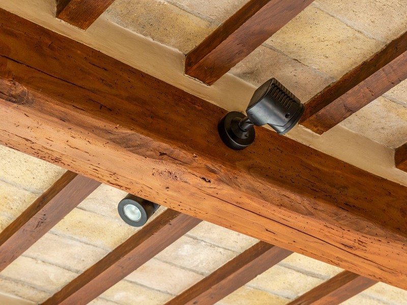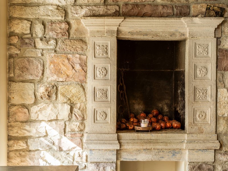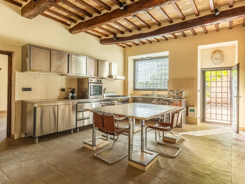 La zona living che richiama alla memoria tempi passati è composta da un accogliente soggiorno impreziosito da suggestive volte a crociera e mura in pietra, un'ampia cucina in acciaio inox con camino e accesso diretto sulla verde corte esterna, sala da pranzo arricchita da travi in legno e pianelle a vista, anch'essa con accesso sul giardino privato e bagno con ampio box doccia.