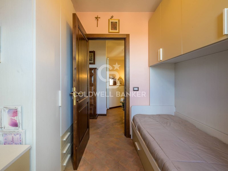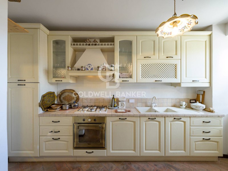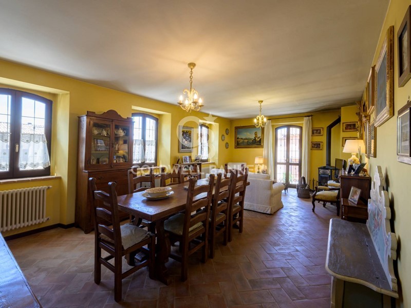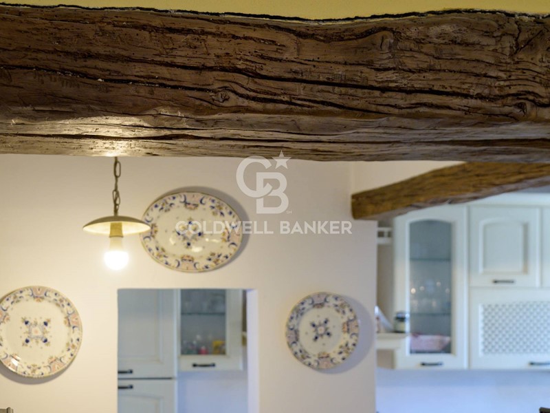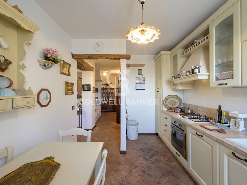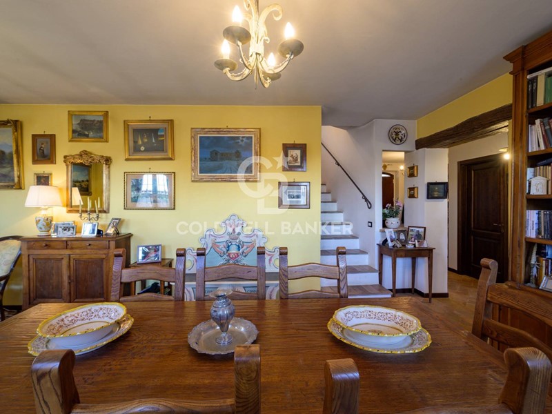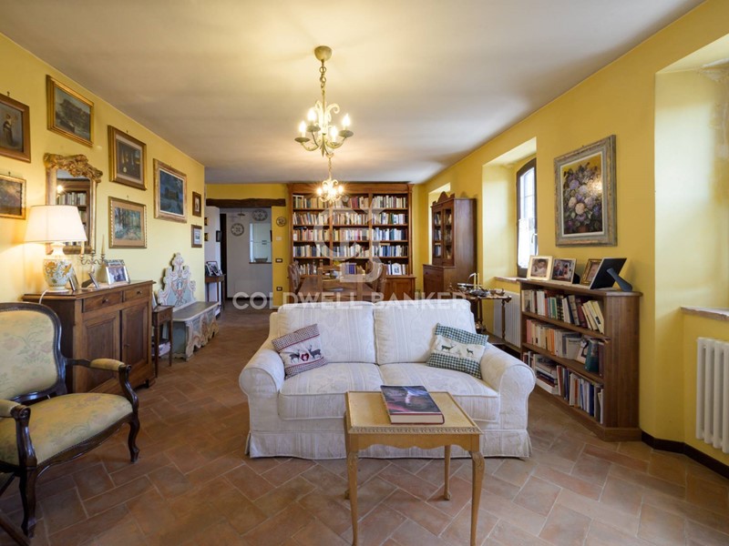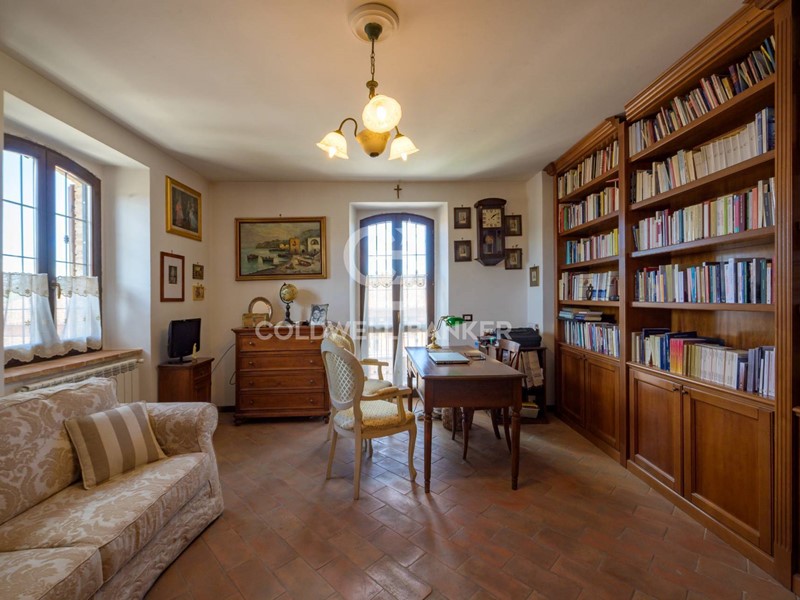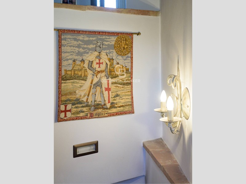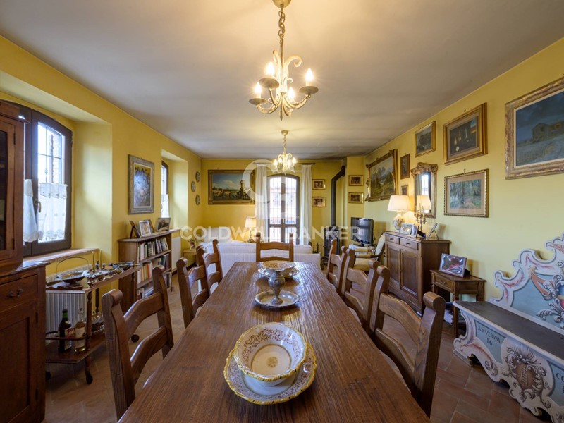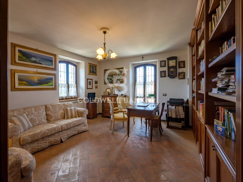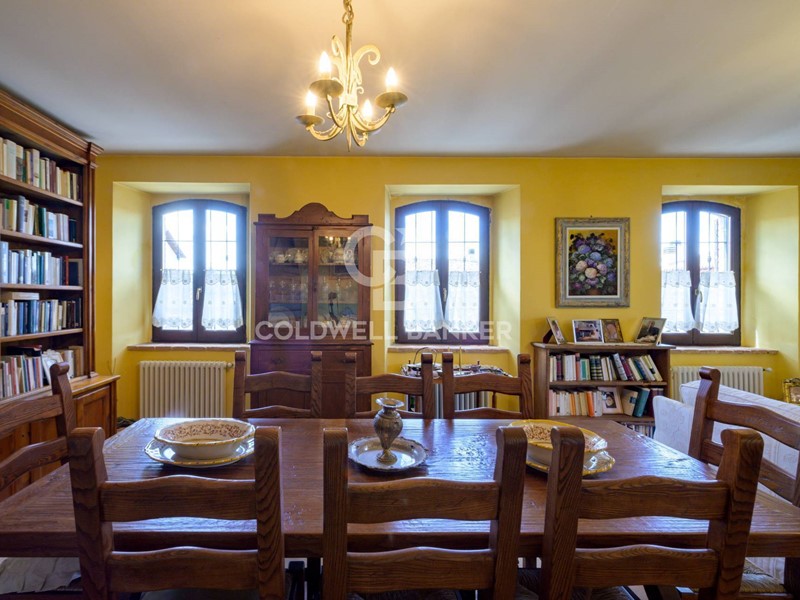 L'immobile è distribuito su tre livelli per un totale di 180mq, oltre ad una soffitta; dispone di doppio ingresso indipendente, uno a piano terra, dal quale si ha accesso alla taverna, al vano pluriuso, al locale tecnico e wc. L'altro, adiacente alla torre del castello, da accesso all'ingresso, cucina abitabile, wc ed ampio salone con balcone. Tramite una scala interna si raggiunge il secondo piano dove troviamo la zona notte con tre camere da letto, di cui una provvista di balcone con splendida vista panoramica e ampio bagno.