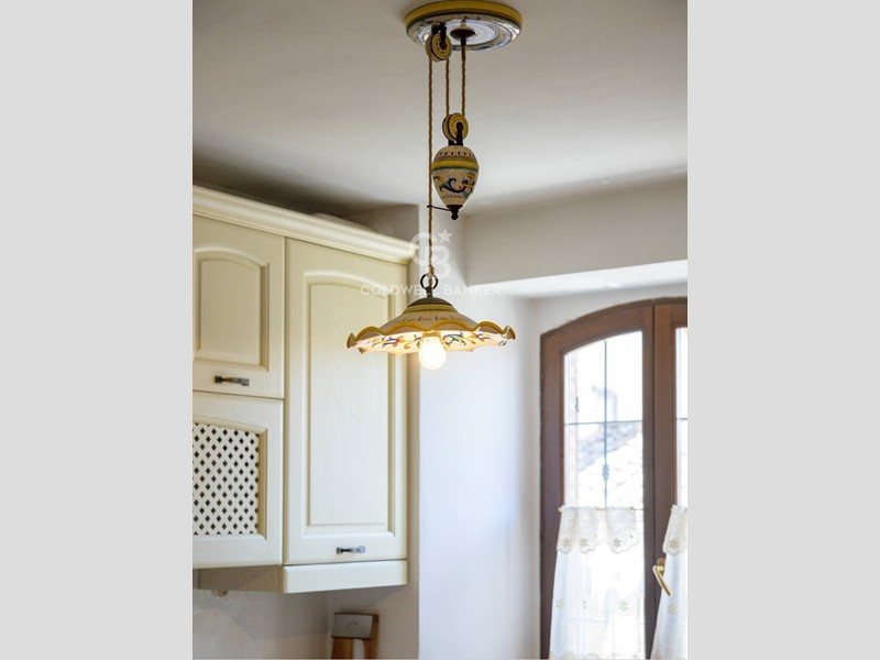 La scala interna, la quale collega tutti e tre i piani, ha passamano in cotto umbro.