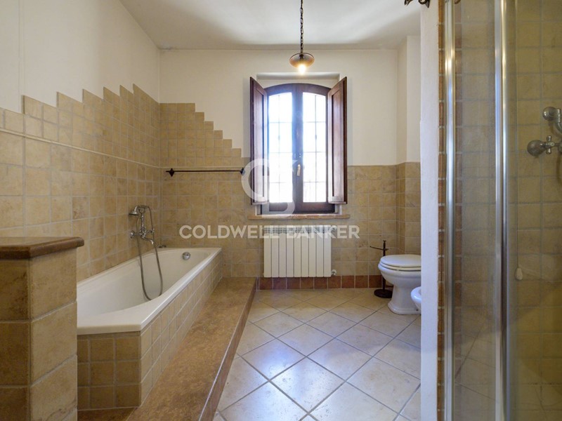 La proprietà è esposta su tre lati (est, sud, ovest), garantendo la presenza di luce naturale. I pavimenti sono in cotto umbro su tutti e tre i livelli, eccetto la cantina ed il bagno grande. Molte pianelle di cotto antico di recupero sono presenti su tutti i davanzali e le finestre. L'immobile è stato completamente ristrutturato con materiali di pregio e presenta ottime finiture.