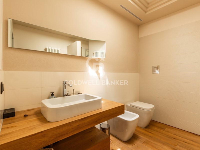 Il piano superiore, perfetto anche come spazio destinato agli ospiti, è caratterizzato da due ampie camere da letto e due bagni. Questo livello è arricchito da eleganti finiture in legno massello, bagni di design e una scala che collega anche con la corte esterna, offrendo a questo spazio un ingresso indipendente. La proprietà comprende un comodo garage di 30 mq e una terrazza panoramica, ideale per momenti conviviali, dotata di acqua e illuminazione.
