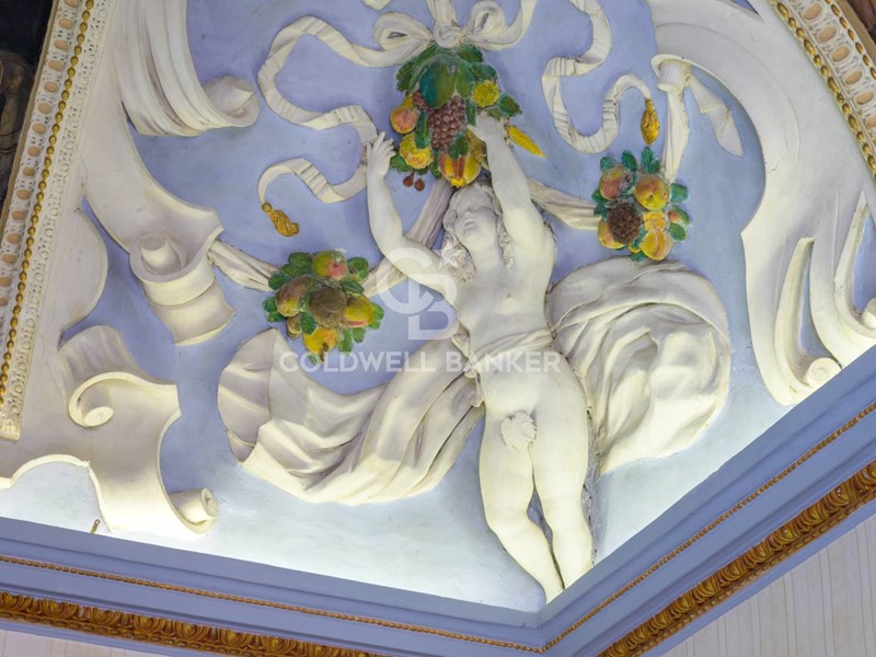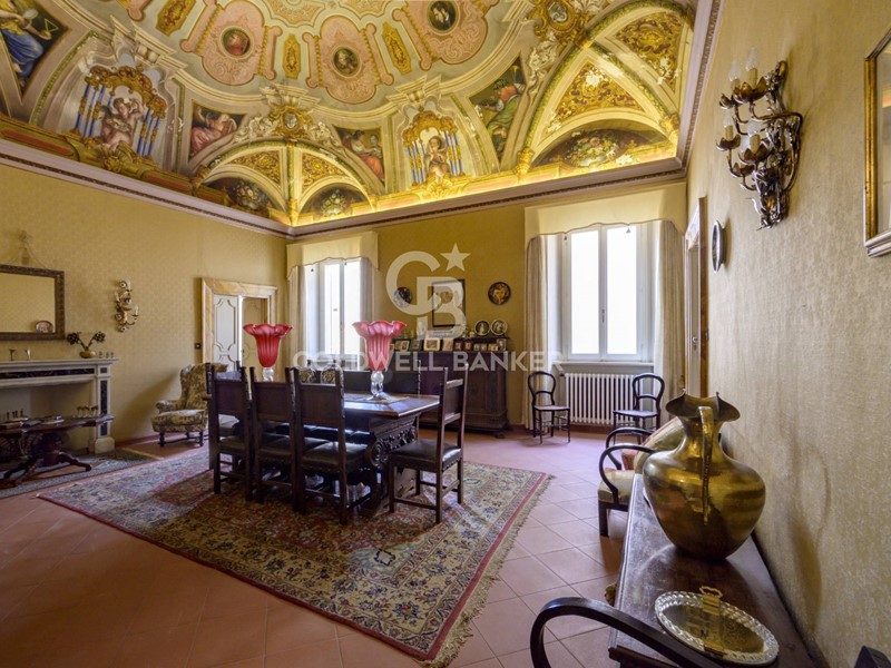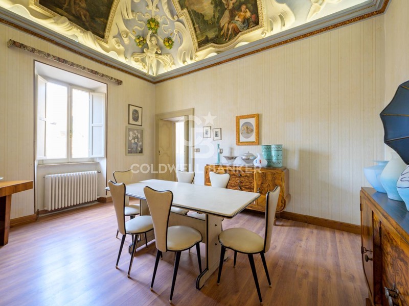 Piano nobile: comprende cucina, un soggiorno, tre magnifiche sale affrescate con camino, un salottino, disimpegno, due camere matrimoniali, due bagni e terrazza.