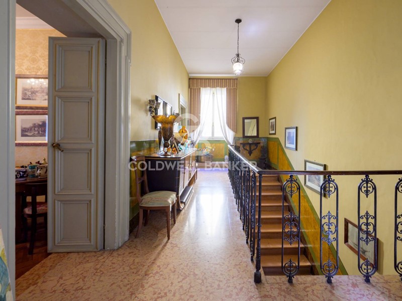 La scala in marmo con balaustra in ghisa esaltano leleganza e il prestigio, pavimenti in parquet e monocottura, ampi infissi e persiane in legno doppio vetro.