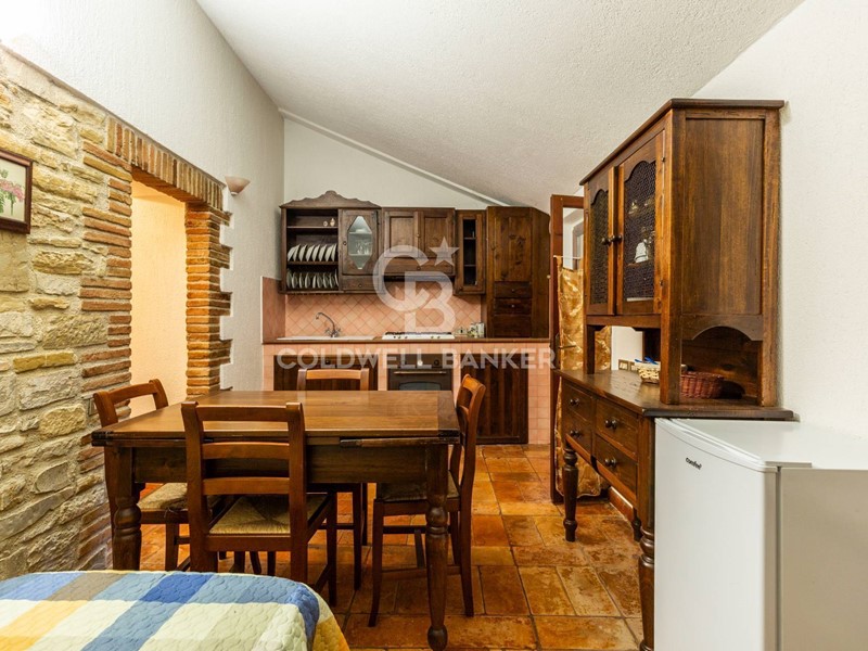 Al piano terra si trova un ampio salone con camino, ideale come sala ristorazione o per momenti di convivialità, una cucina e un bagno, una dispensa, due unità abitative, un vano con forno a legna e una comoda camera con bagno.