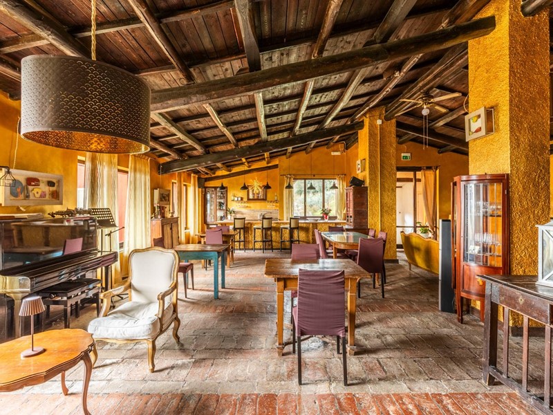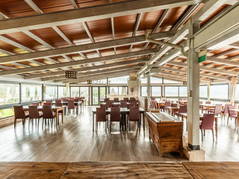 Oltre ad un'ampia e luminosa sala ristorante impreziosita da grandi vetrate che affacciano sul paesaggio circostante, dotato di cucina professionale e bar a servizio della piscina.