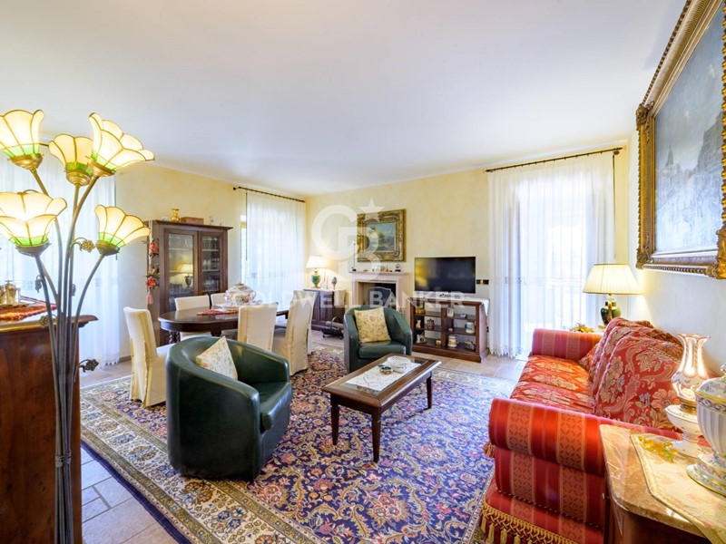 Il primo piano ospita tre camere matrimoniali, due bagni di cui uno en-suite a servizio della zona notte. La cucina realizzata in muratura e il soggiorno di questo piano sono arricchiti da un accesso diretto a una magnifica loggia coperta, da cui si accede a un ampio terrazzo panoramico di 44 mq, ideale per godere della vista e trascorrere momenti di relax.