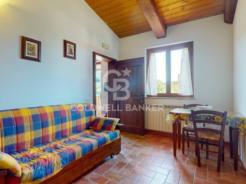 Un casale su due livelli attualmente adibito a struttura ricettiva (B&B), con al primo piano 4 appartamenti speculari di 170 mq, ciascuno dotato di soggiorno, cucina, camera da letto e bagno, ristrutturati nel 2008 con rivestimento esterno in pietra, infissi in legno con doppio vetro. A piano terra si trova un ampio locale di 295 mq da completare, secondo necessità, con archi a volta che separano ogni ambiente e ideale per una destinazione come ristorazione o sala colazioni.