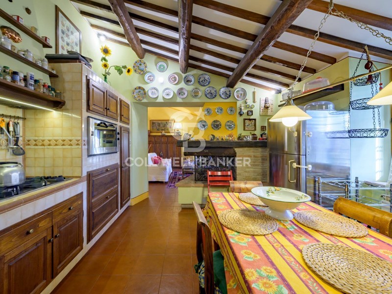 Il fabbricato principale è stato ristrutturato con gusto ed eleganza, presenta dettagli raffinati che ne esaltano il carattere autentico. I pavimenti sono di tipico cotto umbro, elegante listone in legno e ceramica in monocottura. Gli infissi con doppio vetro, grate, zanzariere e impianto di allarme con videocamere. Decorano porte e pareti delicati motivi floreali dipinti a mano da abile artigiano locale.