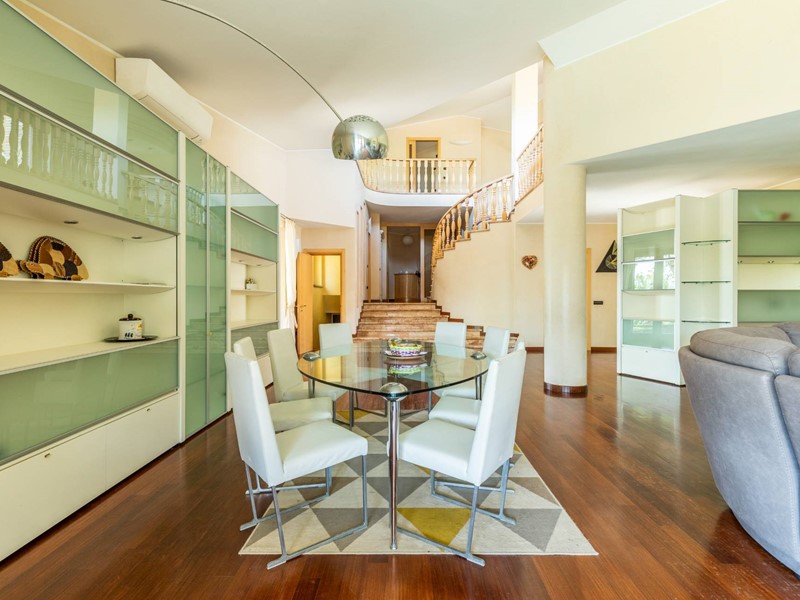 La villa si presenta in condizioni impeccabili, frutto di una manutenzione attenta e continua. Le finiture sono di altissimo livello: pavimenti in parquet pregiato, marmi, infissi di qualità e soluzioni tecnologiche moderne, come i 16 Kw di pannelli fotovoltaici installati sul tetto, che assicurano efficienza energetica e sostenibilità. Ogni dettaglio è stato pensato per offrire unesperienza abitativa esclusiva, in un contesto di lusso e funzionale.