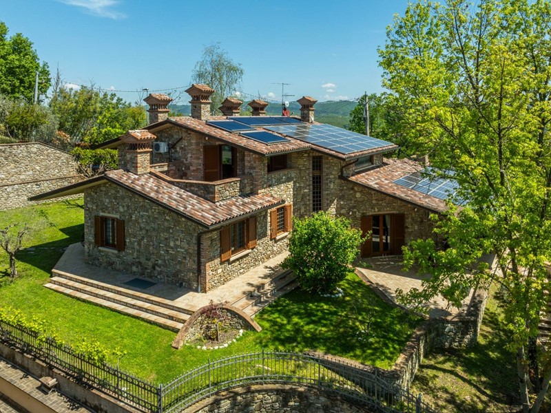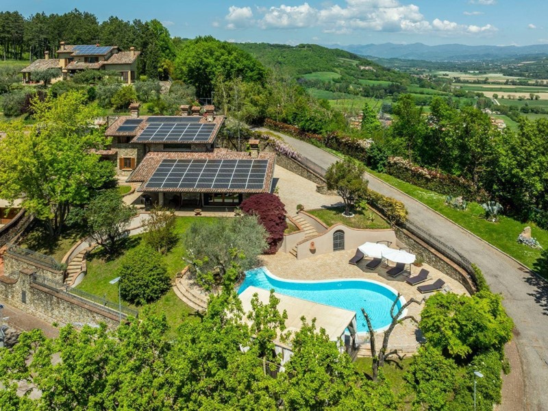 Immersa nel verde delle colline umbre, in posizione dominante, questa splendida villa in pietra offre una vista panoramica mozzafiato sui paesaggi circostanti. Situata in una zona tranquilla e a breve distanza dai principali servizi, la proprietà rappresenta un perfetto connubio tra fascino rustico e comfort moderni. Caratterizzata da linee architettoniche raffinate e da una cura minuziosa nei dettagli, questa residenza si sviluppa su tre livelli, incarnando lo stile di una dimora signorile senza tempo.