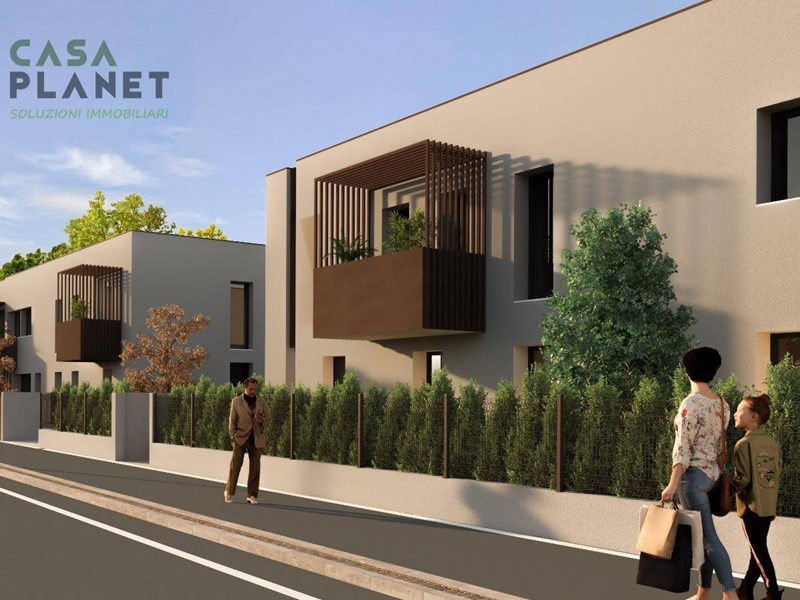 L'appartamento è suddiviso tra una zona giorno di 37 mq. con cucina a vista, portico di 9 mq., con accesso dal soggiorno. Zona notte con tre camere, una matrimoniale di quasi 17 mq. e due singole di 9 mq., oltre al secondo bagno e ad una lavanderia. Accesso diretto al garage dall'abitazione. Classe energetica di progetto A4.