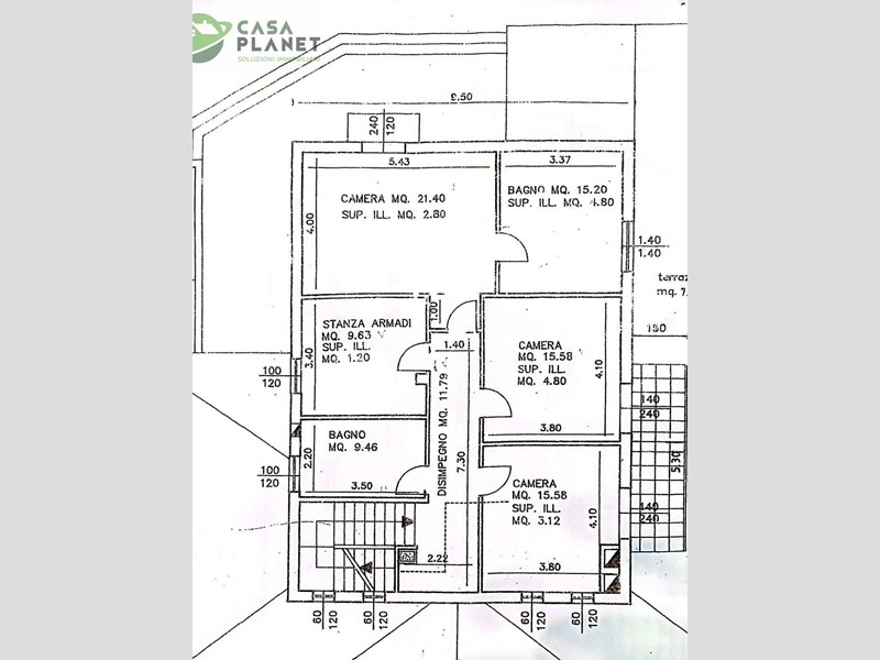 Al piano secondo dal disimpegno si accede alle 3 camere matrimoniali ed una stanza armadi, di cui una di mq. 22, con sala da bagno di oltre 15 mq., stanza armadi di quasi 10 mq., e altre due camere di 16 mq. cadauna. Completa la zona zona notte un ampio bagno di quasi 10 mq., e due poggioli.