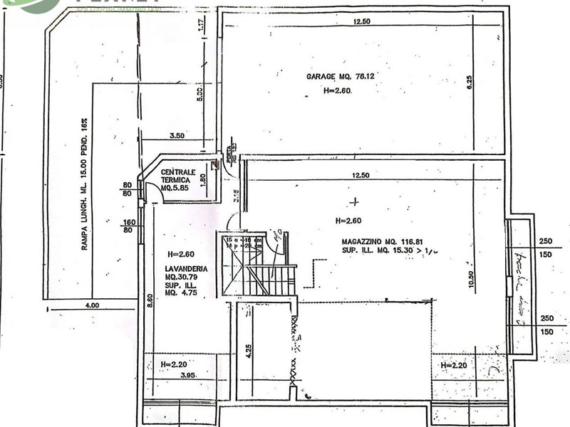 Al piano interrato troviamo un grande garage di 78 mq., la taverna di 85 mq. dotata di cucina più enoteca di 36 mq., una stanza lavanderia di 31 mq. e la centrale termica.