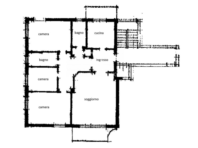 L'immobile si compone di ingresso, salone, cucina abitabile, tre camere due bagni entrambi finestrati, ripostiglio e due poggioli.