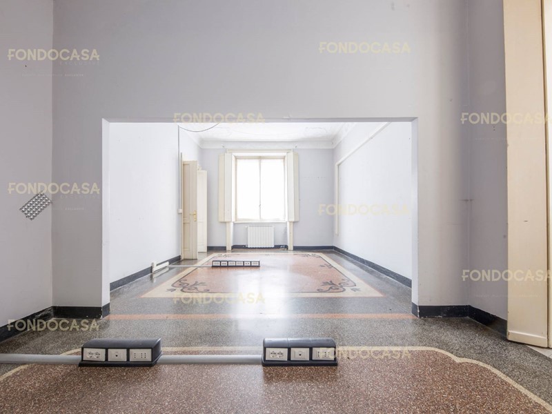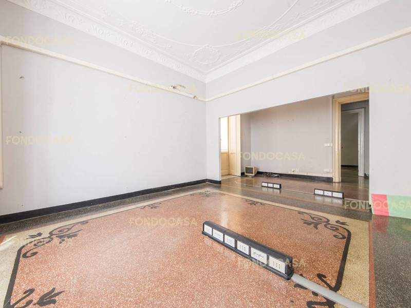 Ci troviamo al piano terra di questo palazzo dalle importanti facciate signorili, e l' appartamento, da ristrutturare, è così composto: ampio ingresso, dal quale spostandoci verso il lato ovest troviamo la grande zona giorno composta da tre ampi saloni, tutti collegati tra loro e rifiniti con importanti stucchi sui soffitti.
