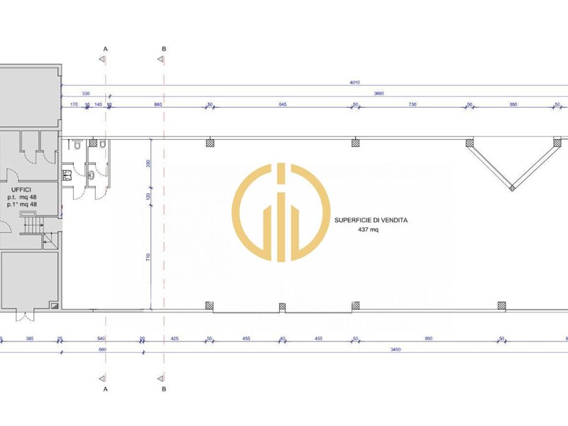 Con una superficie totale di 700 mq, l'unità si compone di 100 mq di uffici distribuiti su due piani, perfetti per gestire il tuo business in modo efficiente.
