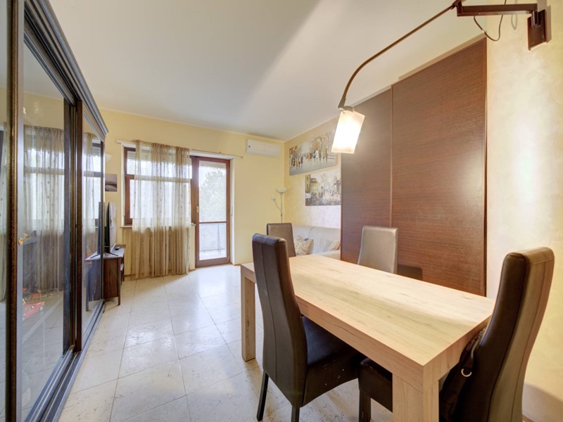 L'immobile, in buone condizioni interne, è composto da ingresso living su ampio soggiorno, cucina abitabile, due camere, doppi servizi entrambi con finestra e ripostiglio.