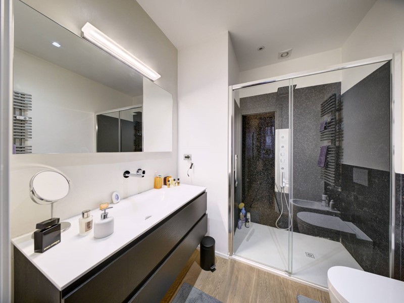 Limmobile si distingue per spazi ampi e ben distribuiti, con ambienti luminosi e finiture di qualità. Lingresso conduce ad una sala spaziosa e funzionale, perfetta per chi ama la convivialità, e un'ampia cucina abitabile. La zona notte è composta da due ampie camere da letto, di cui una dotata di servizio privato, ideali per famiglie o per chi desidera uno spazio in più per studio o lavoro, bagno moderno con bagno turco e locale lavanderia.