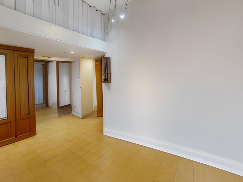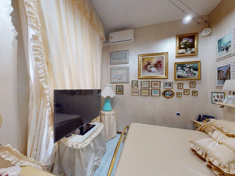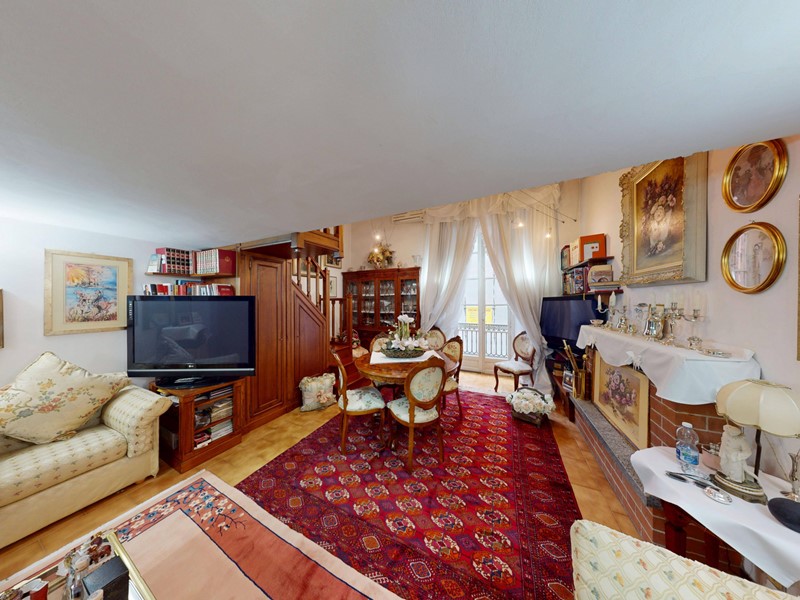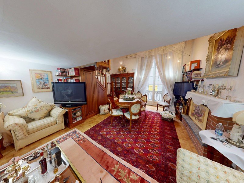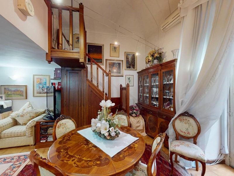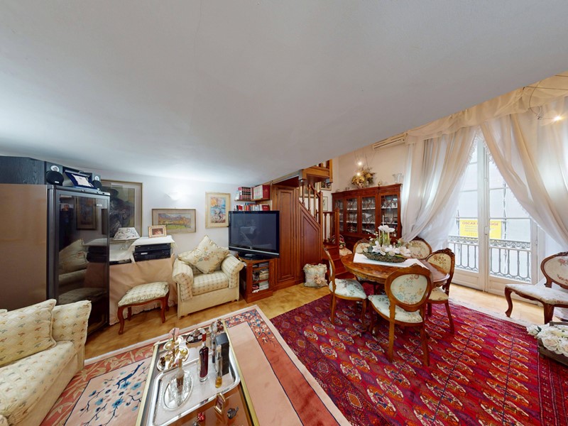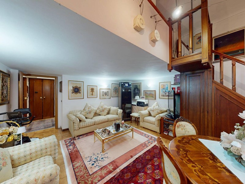 L'immobile è composto da ingresso su disimpegno, ampio soggiorno con primo balcone che affaccia su via Fabro e dotato di soppalco di circa 18 mq, cucina abitabile da cui è possibile accedere al secondo balcone con affaccio sull'interno cortile, due camere di cui una padronale con cabina armadi, bagno con finestra e comodo ripostiglio.