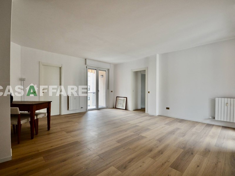 Gli interni dellappartamento sono stati riassegnati utilizzando un layout funzionale, lasciando maggiore respiro alla luminosissima zona giorno open space che integra benissimo il soggiorno con la cucina e larea pranzo con spazio riservato.
