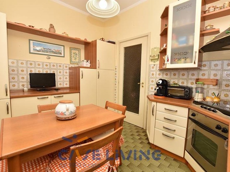 COMPOSIZIONE; L'appartamento si sviluppa su una metratura totale di circa 85mq, è caratterizzato da una esposizione angolare e sin compone di ampio ingresso con disimpegno, cucina abitabile, soggiorno con balcone, camera da letto matrimoniale, cameretta e bagno con doccia. L'immobile, eccezion fatta per il bagno, è dotato delle finiture originali con marmo originale nella zona giorno e parquet nelle camere, infissi in vetro legno con zanzariere e tendone parasole.