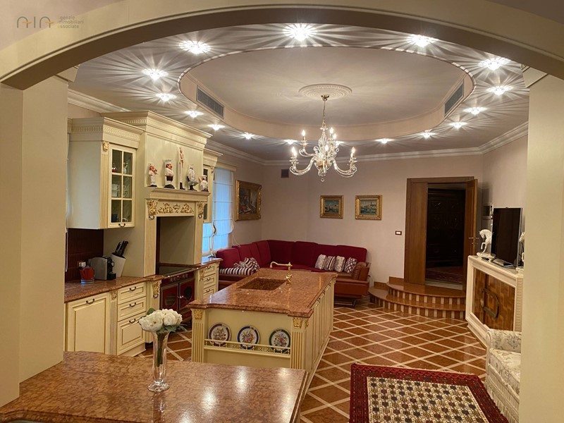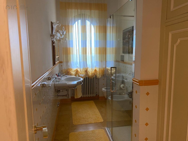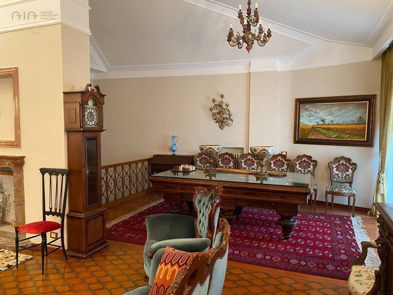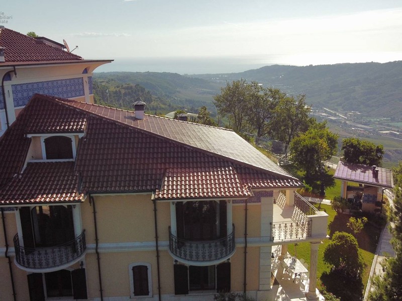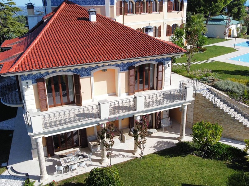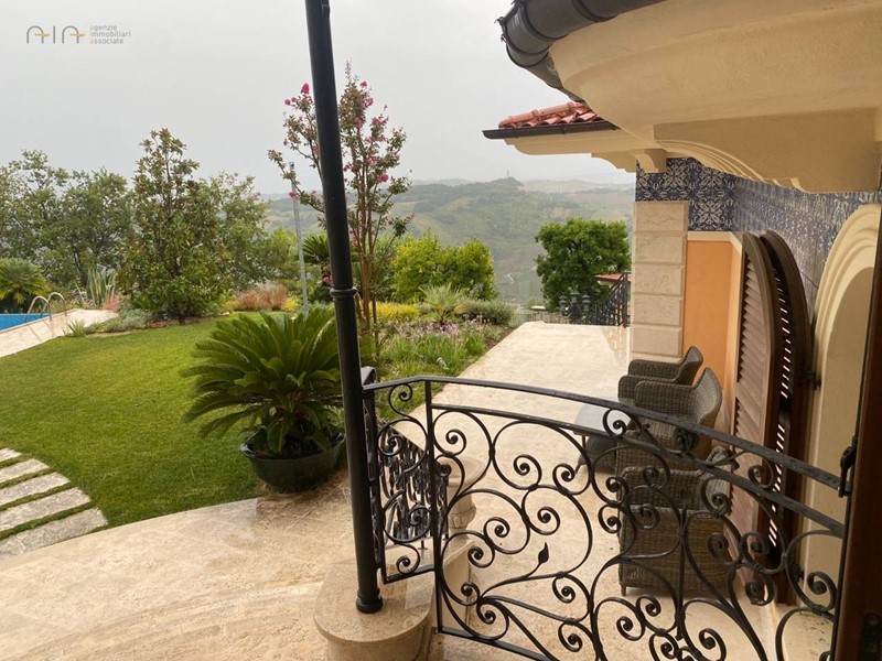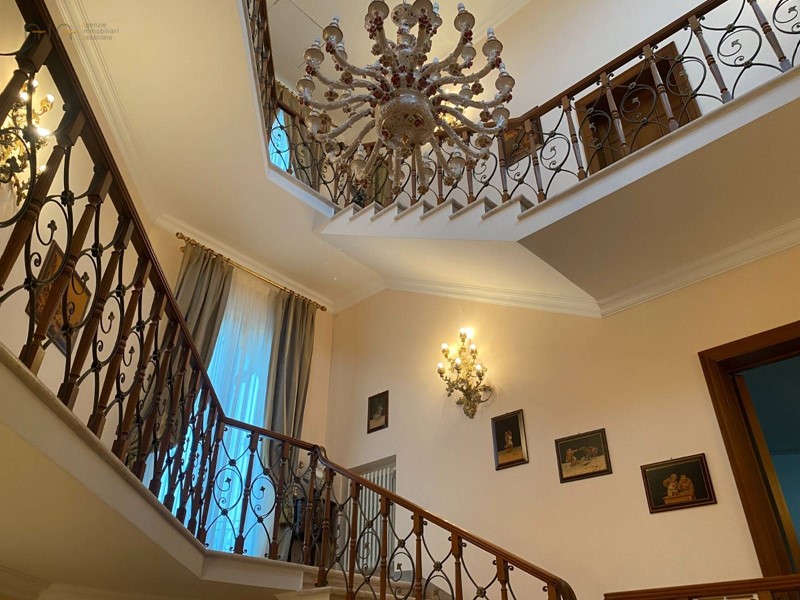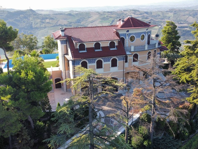 Prestigiosa villa delle dimensioni complessive di 680 mq. circa disposta su 3 livelli e composta di:° piano terra composto di ingresso su vano scala di collegamento ai piani superiori, ampio sala da pranzo con zona cottura, tinello, salottino e bagno oltre scala di servizio di collegamento al primo piano° piano primo completo di ampio salone e zona notte con 5 camere matrimoniali e tre bagni;° piano secondo completo di quattro camere oltre 2 servizi igienici;°completa la proprietà un garage al piano terra sufficente per tre autovetture oltre ad un mezzaziono adibito ad appartamentino. La villa è fornita inoltre di uno stupendo parco di circa 16.400 mq in parte piantumato a giardino e in parte agricolo. La villa è fornità di una lussuosa piscina con vista mare. L'immobile si presenta in buono stato di conservazione, con finiture di lusso. Ubicata nella fascia collinare sopra Grottammare. Adatta ad ospitare più nuclei familiari.