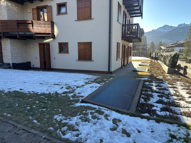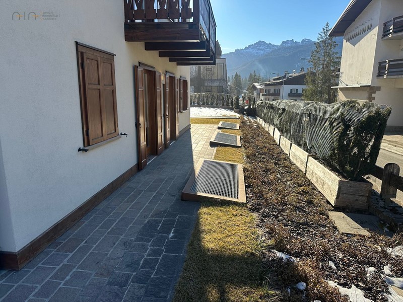 Appartamento disposto su due livelli ( piano terra e piano seminterrato) delle dimensioni complessive di circa 230 mq e così composto:piano terra delle dimensioni di circa 90 mq avente ingresso indipendente e completo di ingresso su ampio soggiorno, cucinino solo cottura, due camere da letto matrimoniali oltre due bagni di cui uno nella zona notte e uno di servizio; piano seminterrato collegato con scala interna di circa 140 mq avente ingresso autonomo completo 6 ampi vani e 4 bagni locale lavanderia. Completa la proprietà un giardino esclusivo perimetrale di circa 300 mq oltre vari ripostigli ricavati nel perimetro dell'appartamento e 3 posti auto di cui due coperti e uno coperto. L'immobile si presenta in ottimo stato con rifiniture in legno tipiche degli appartamenti di montagna, impiantistica di riscaldamento centralizzato sezionato in tre diversi ambienti, infissi in legno con vetro camera muniti di persiane. Ubicato a 700 mt dal centro con prevalente esposizione a sud est con vista sulle Tofane. Adatto a più nuclei familiario a uso investimento.