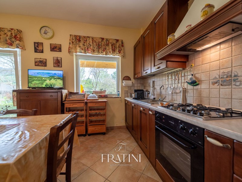 For sale in Castel di Sangro, a splendid semi-detached house, consisting of two well-divided apartments spread over two floors, free at the deed and in an excellent state of conservation, built in 1994 and with a total surface area of 300m². Each villa consists of a large and bright living room, kitchen, three bedrooms and two bathrooms, perfect for welcoming a large family or for those looking for large spaces. On the roof of the villa there are photovoltaic panels guaranteeing a production of 19 kW with an incentive from the Second Energy Bill activated in 2010 producing approximately 23,000 kW per year. Approximately half of the energy produced is used for utilities and to power the two autonomous heating systems equipped with heat and solar thermal pumps. Both villas are also equipped with independent heating with methane-powered boilers, guaranteeing an always warm and comfortable environment. The interiors are bright and modern, thanks to the double-glazed PVC frames, which allow excellent thermal and acoustic insulation. The property is also equipped with a home security alarm system. Furthermore, there is a large terrace, ideal for enjoying moments of relaxation outdoors. The semi-detached house is entirely surrounded by a private garden of approximately 4000 m2 with gazebo and pond. There is an irrigation system and a lighting system.