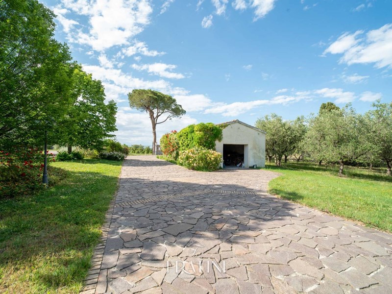 The exterior of the villa is characterized by a large private garden equipped with an elegant swimming pool, ideal for spending moments of relaxation in the open air and organizing outdoor dinners and lunches. The entire property is entirely fenced, and accessible via a pedestrian gate and driveway gate, with plenty of parking spaces.