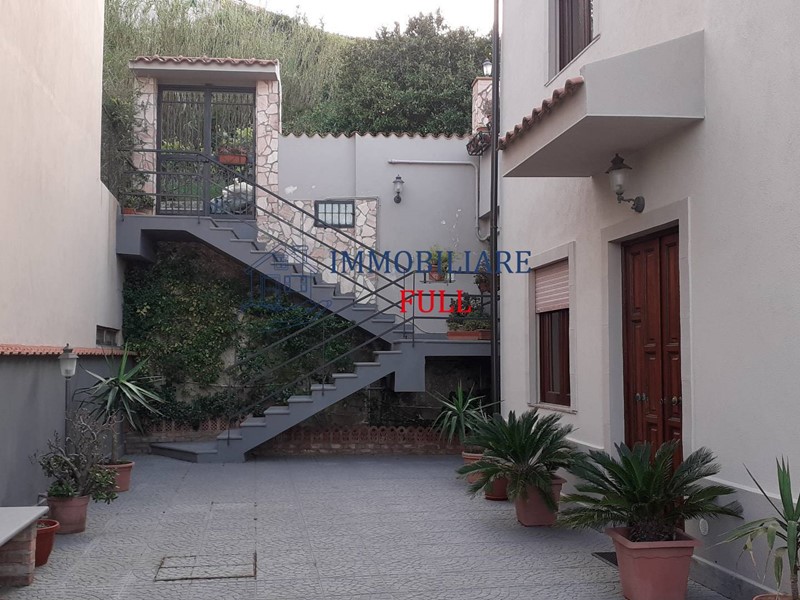 L'immobile si sviluppa su tre elevazioni,al primo piano zona giorno con un salone con camino,una stanzetta, cucina, bagno e ripostiglio . Al secondo piano zona notte con quattro camere, bagno, ripostiglio e un balcone dove si può ammirare uno spendito panorama sullo stretto.Inoltre un seminterrato con spazio esterno, un angolo barbecue, forno e un terreno di 430 mq di terreno