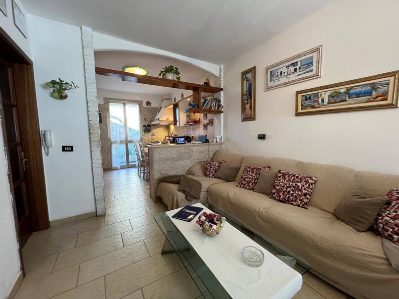 Lingresso indipendente si apre su un ampio soggiorno ben illuminato, con cucina a vista, che affaccia sul giardino privato, perfetto per rilassarsi o accogliere amici e familiari.