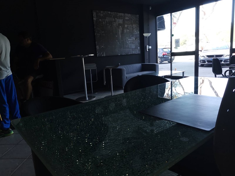 Fondo artigianale completamente ristrutturato, diviso in due locali, la stanza sul davanti completamente ristrutturata con impianto luci a led e con climatizzatore . una porta scorrevole divide con la stanza sul retro doppio bagno con antibagno .