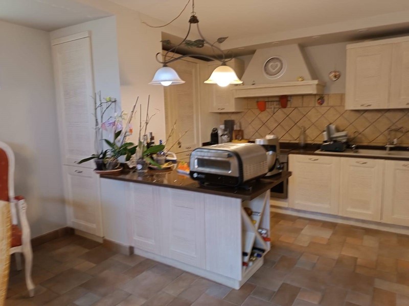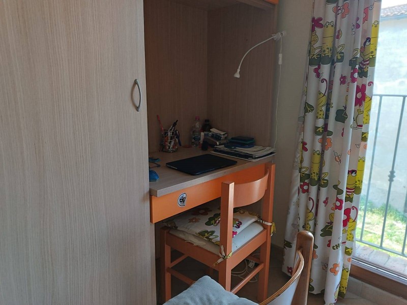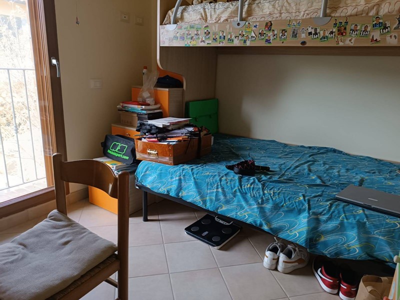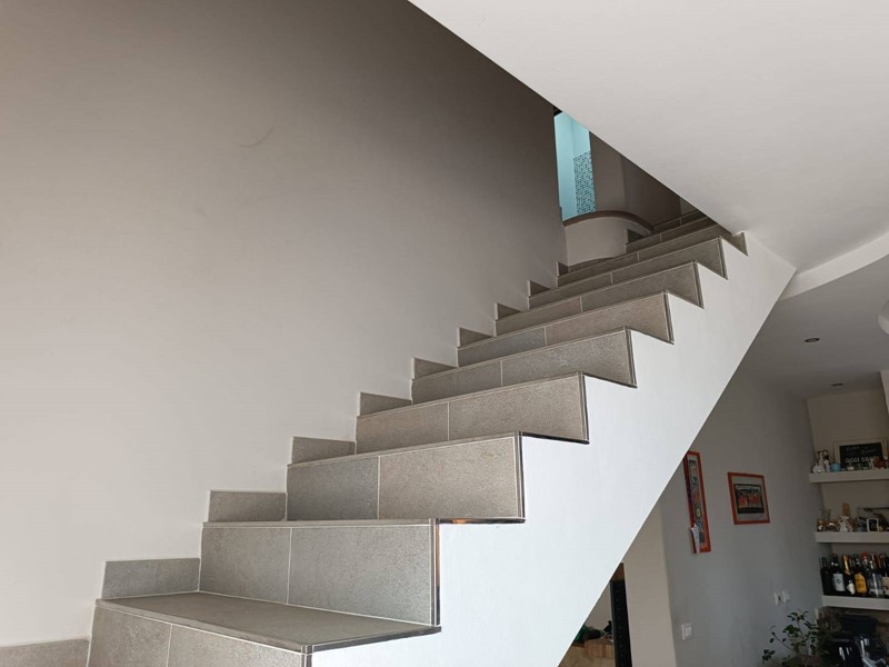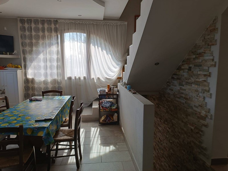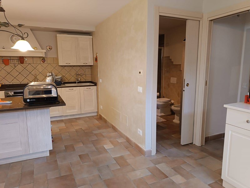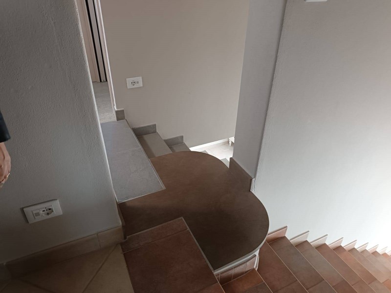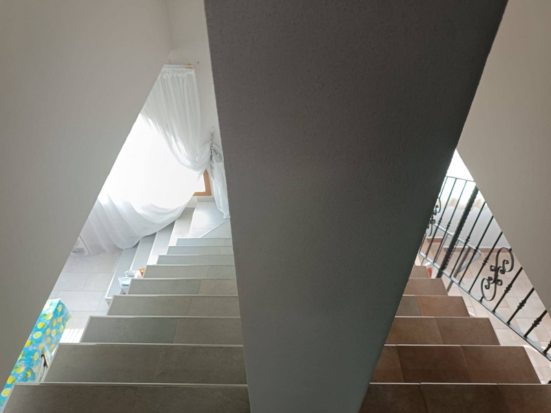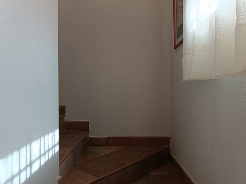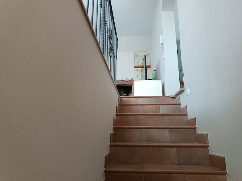 Al piano terra rialzato ci sono le porte di accesso alla casa, dove entrando troviamo, nella prima ala, l'ampia cucina abitabile con il primo camino dall'aspetto post moderno, salendo per le scale arriviamo al secondo piano nella zona notte dove abbiamo una matrimoniale, una cameretta, entrambe con porta finestra molto luminose ed un bagno con doccia e lucernario.