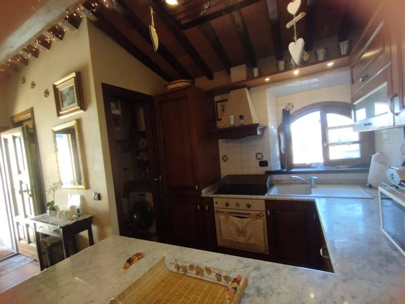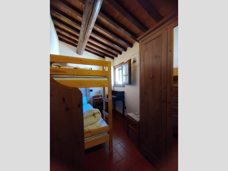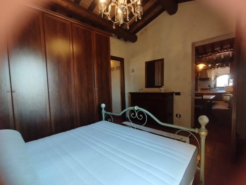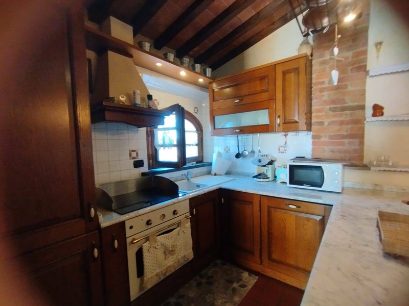L'immobile, composto da tre vani, è caratterizzato da ottime finiture rustiche in stile Toscano e camino, con suggestive travi a vista che ne esaltano il calore. L'accesso avviene tramite un grazioso balconcino e scale esterne, che conducono direttamente all'ingresso.