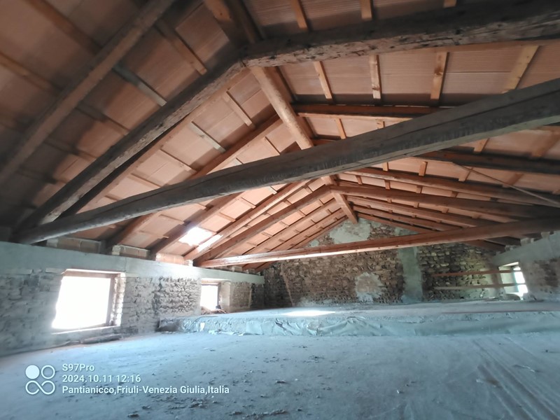 Compendio immobiliare contadino friulana composto da 2 abitazione accostate e da fabbricati accessori. La prima abitazione è composta così come di seguito indicato: p.t. da ripostiglio, bagno; p1 da terrazza di accesso esterna raggiungibile mediante scala esterna, disbrigo, w.c. cucina, camera; p2 da soffitta. La seconda abitazione è composta così come di seguito indicato: p.t. da cucina, depositi, ripostigli; p1 da 3 camere da letto, soffitta; p2 da soffitta. I piani della seconda casa sono collegati internamente da una scala. Alla corte interna delimitata sulla pubblica via comunale da un portone carraio si accede attraverso un portico passante. A supporto delle abitazioni sono presenti tettoie e depositi, anche al piano scantinato, posti all'interno della corte oltre a un terreno adibito a giardino pertinenziale.