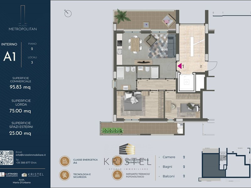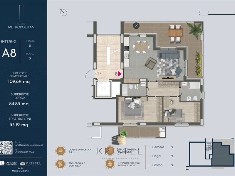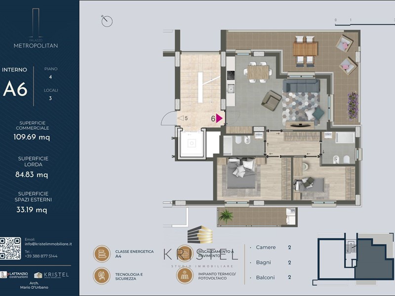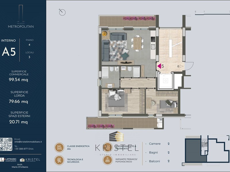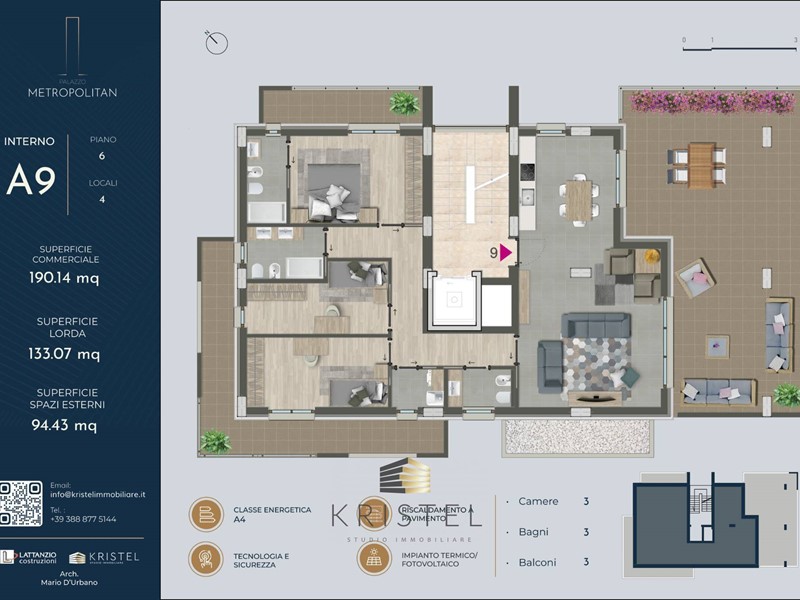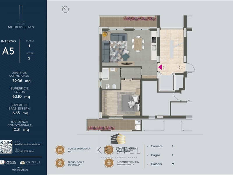 Appartamenti in Classe Energetica "A4" altamente performanti; un ambiente domestico reso sostenibile dai più innovativi sistemi di gestione di aria e acqua, riscaldamento e raffrescamento e dall'implementazione delle nuove frontiere della domotica. Cappotto termico, impianto di riscaldamento a pavimento, pannelli fotovoltaici, ventilazione meccanica controllata per un flusso di aria sempre pulito all'interno delle vostre abitazioni, domotica Smart Home e tanto altro ancora!